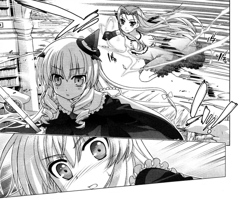 And so with Hayate already on the scene, StrikerS veteran Lutecia shows up to give hell to the little witch.